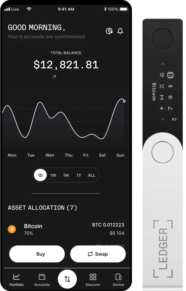 Unlock the full Ledger experience by pairing the Ledger Live app with a Ledger hardware wallet. Our wallets are independently certified and designed to resist sophisticated cyber attacks.